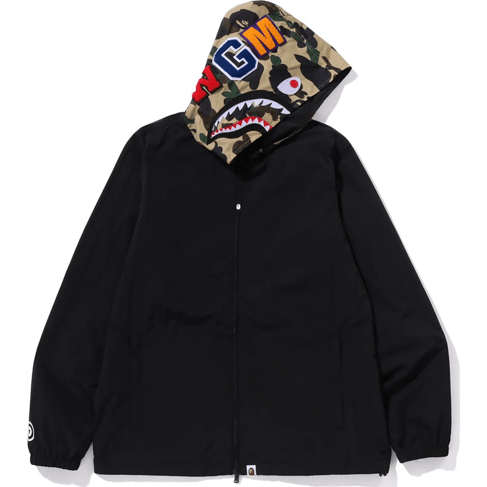 Elevate your streetwear game with the Bape 1ST CAMO SHARK HOODIE JACKET MENS Green. This statement piece combines comfort and style, making it a must-have for any fashion-forward individual.