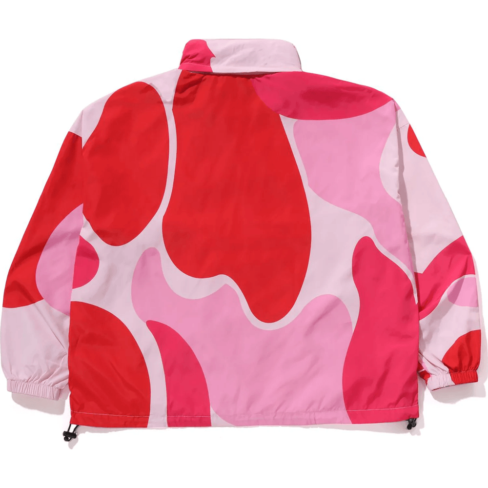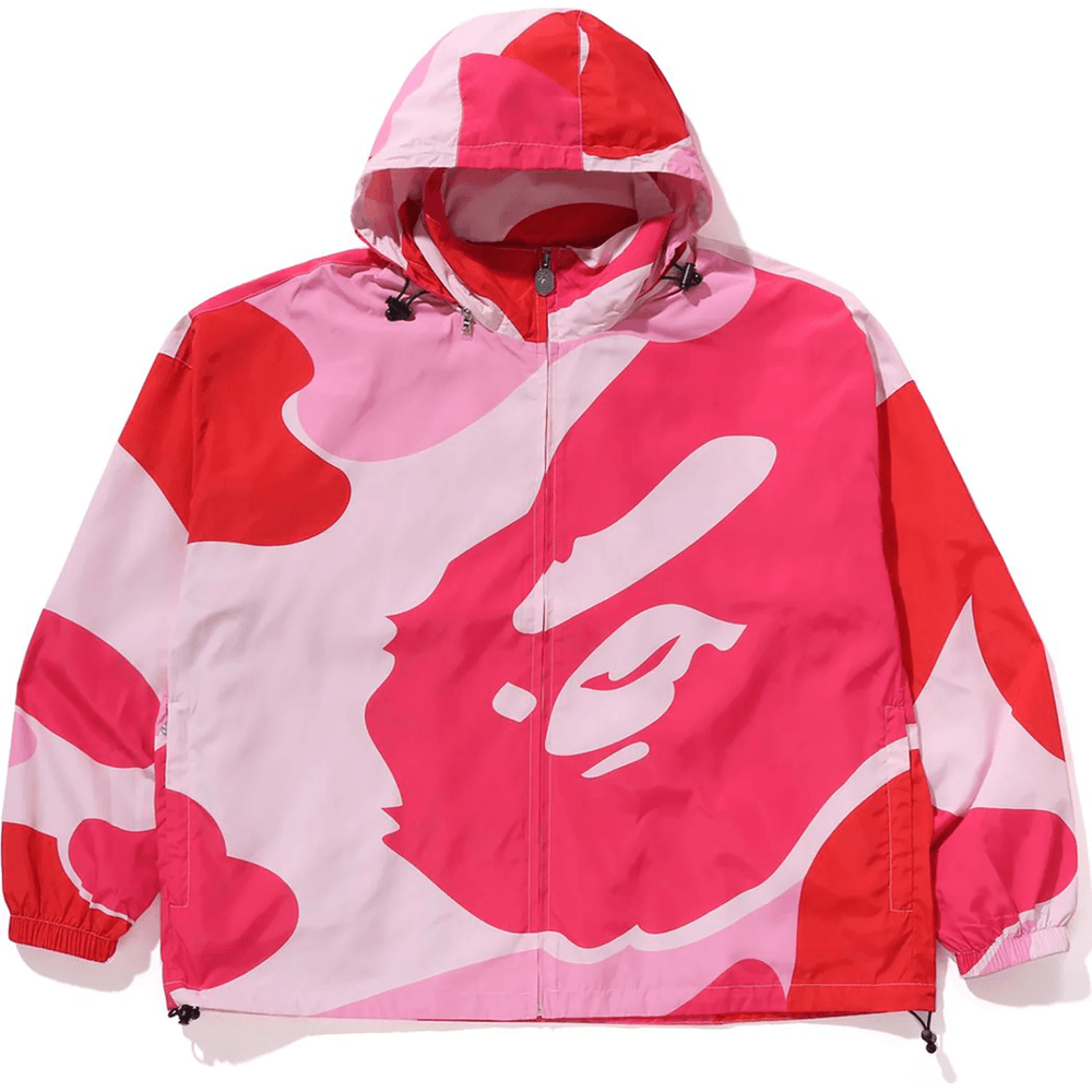 The Bape ABC CAMO HOODED JACKET MENS Pink features a retractable hood that allows you to adapt your style to suit the weather. The adjustable hem drawstring ensures a snug fit, making it ideal for outdoor adventures or casual outings. Crafted from high-quality polyester, this jacket offers durability and comfort, keeping you warm without compromising on breathability.