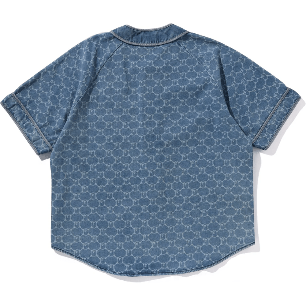 Discover the Bape COLLEGE MONOGRAM BASEBALL SS DENIM SHIRT MENS Light Indigo