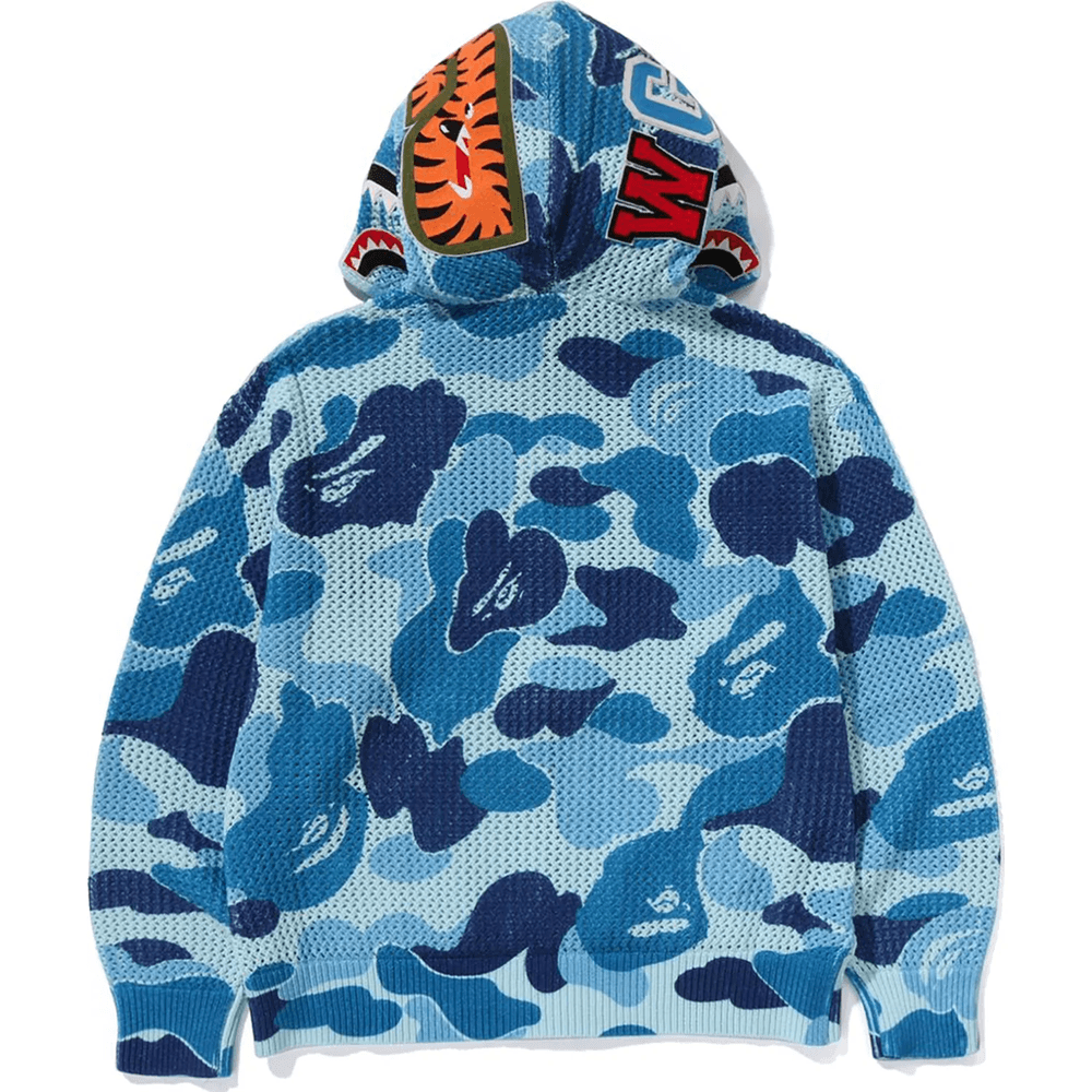 Bape ABC CAMO CROCHET RELAXED FIT SHARK FULL ZIP HOODIE MENS Blue