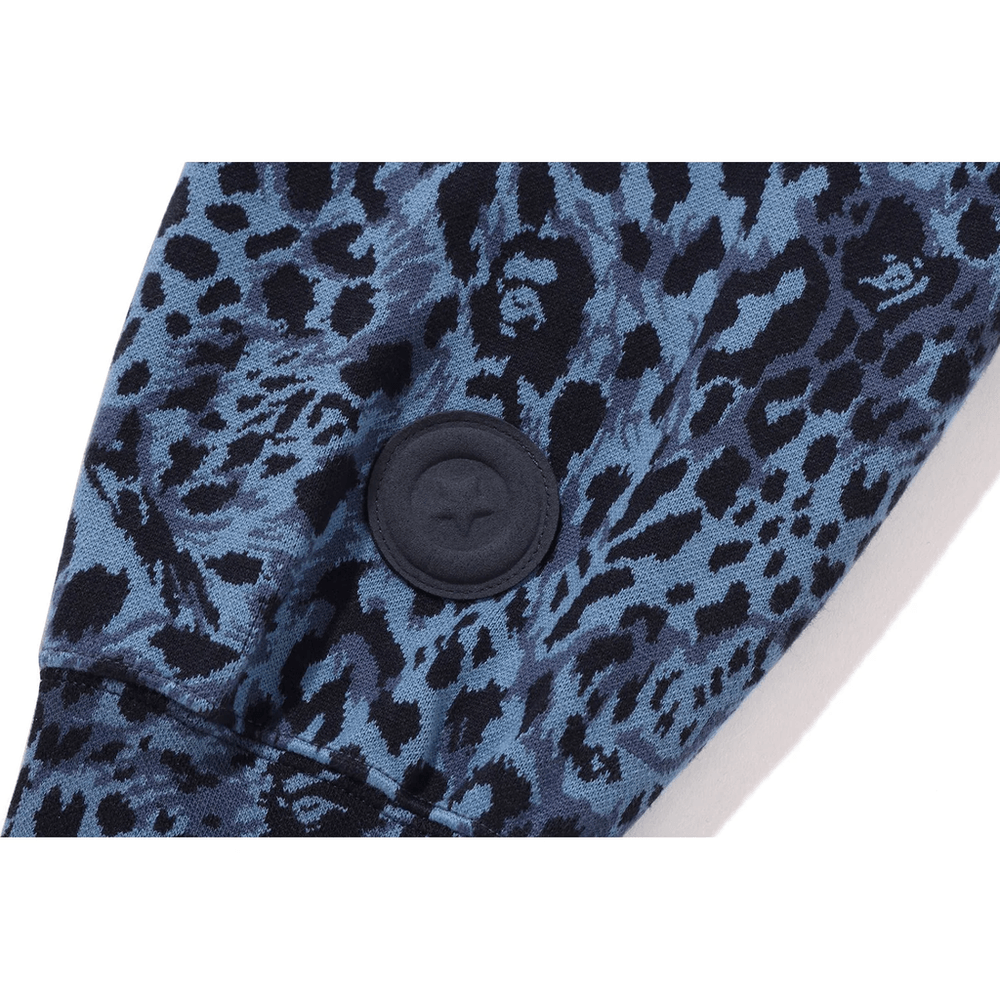 The Bape WILD LEOPARD PATTERN SHARK RELAXED FIT FULL ZIP HOODIE MENS Navy is designed for those who dare to stand out. This full-zip hoodie effortlessly combines comfort with an audacious vibe, making it perfect for casual outings or lounging at home. The distinctive wild leopard pattern not only showcases your unique style but also pays homage to Bape's rich heritage in street fashion.