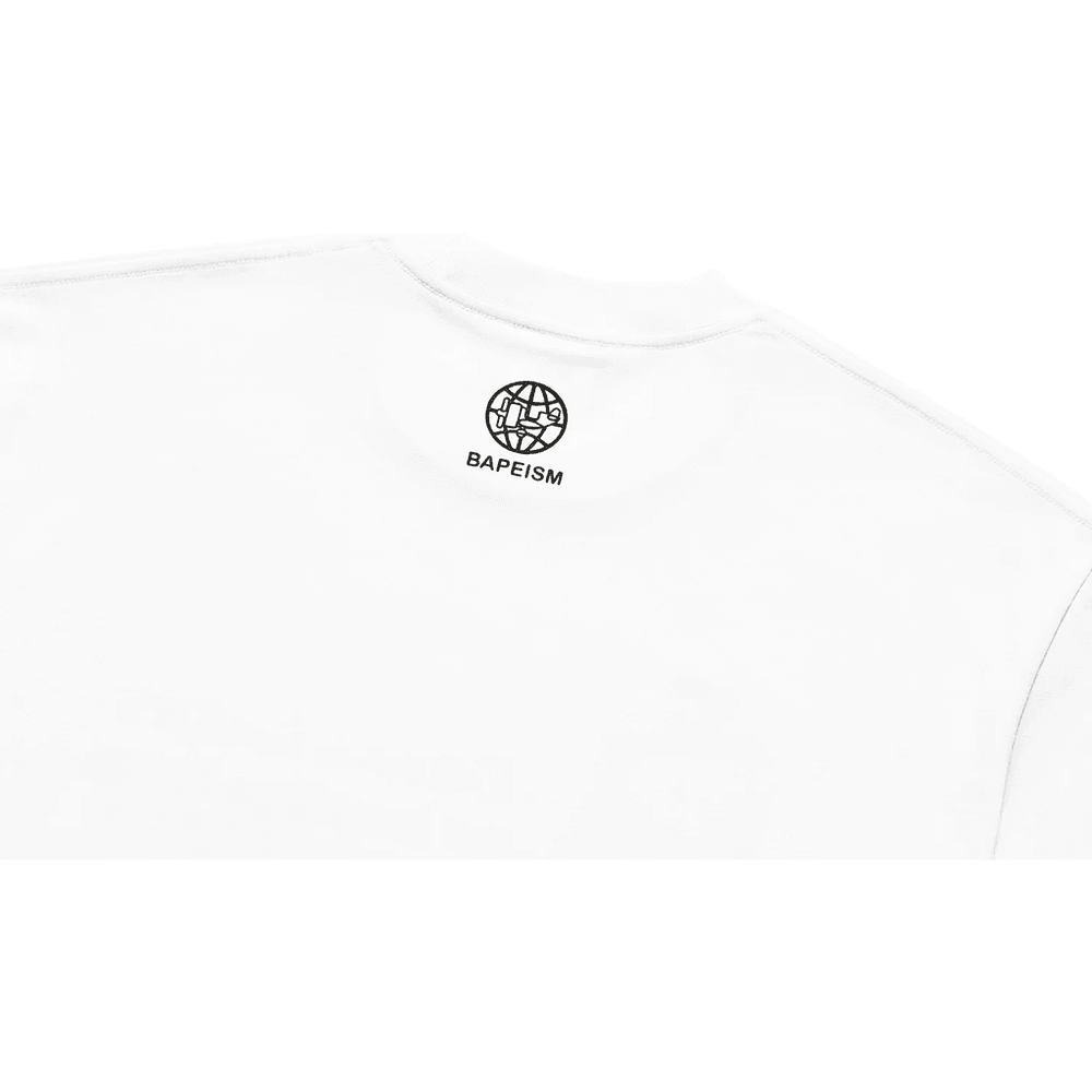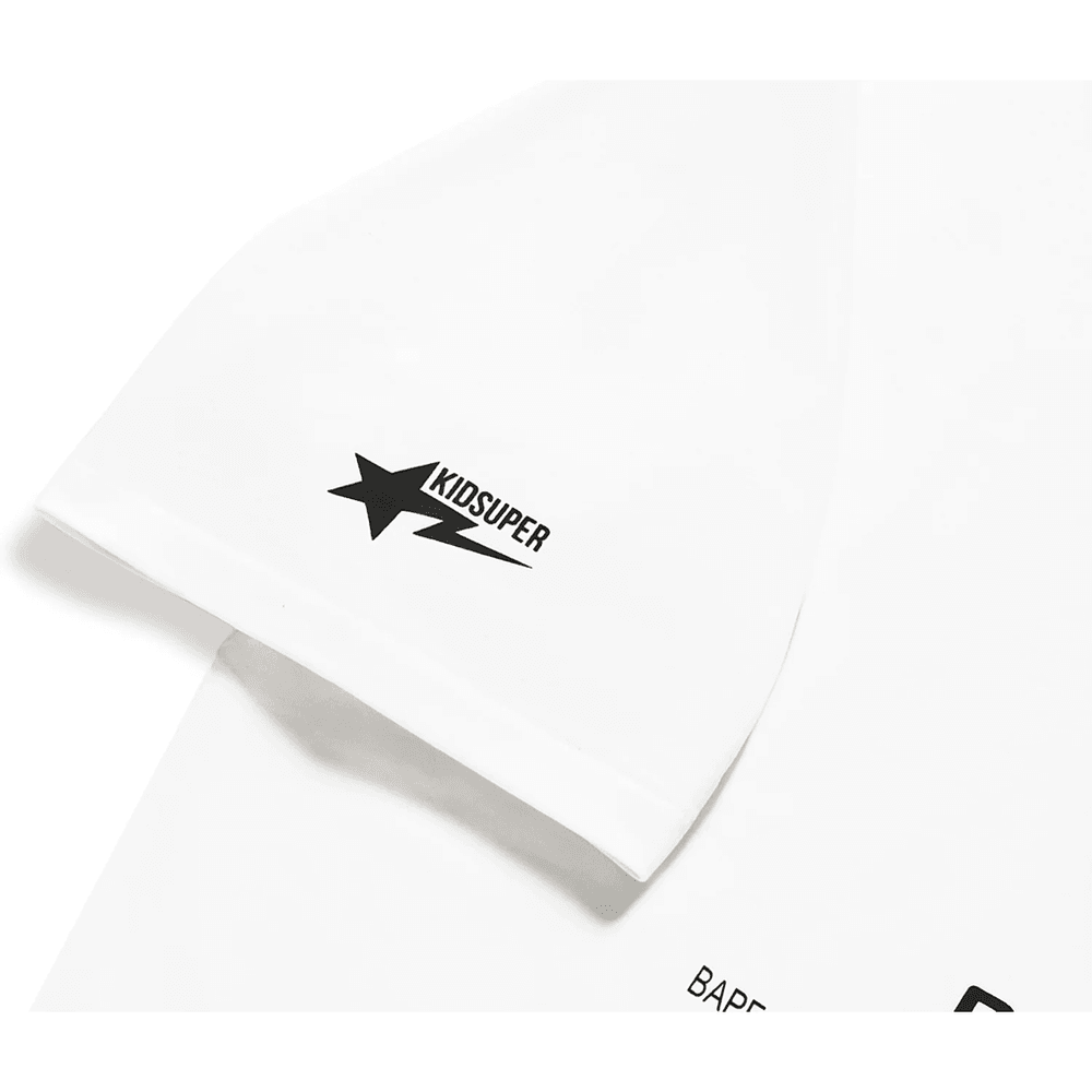 Elevate your streetwear game with the exclusive BAPE X KIDSUPER BAPEISM LOGO TEE MENS White. This iconic tee seamlessly blends the bold creativity of BAPE® and KidSuper, making it a must-have for fashion-forward individuals who embrace fearless self-expression.